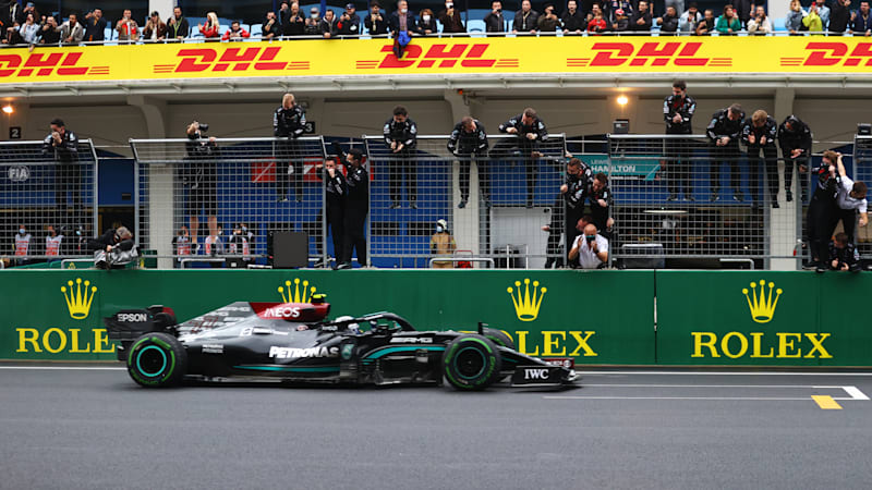 “Haha, yes!” Bottas shouted after his 10th career win and a much-needed one during a frustrating last season with Mercedes before joining Alfa Romeo next year.